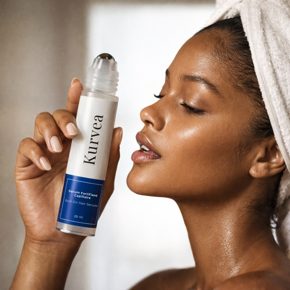 Grâce à son embout roll-on de précision, le sérum s’applique directement sur les zones concernées (tempes, contours, zones clairsemées), tout en massant délicatement le cuir chevelu afin de stimuler la micro-circulation et de favoriser la repousse.